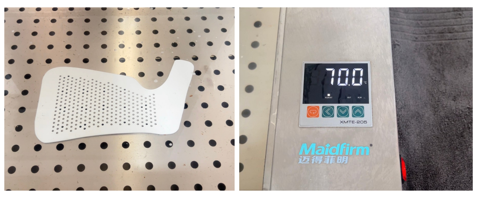 - heating softening: Wear heat-insulating gloves to put the splint inin hot water at 65 – 70°C, soak for 2 – 3 minutes until soft, remove and drain.